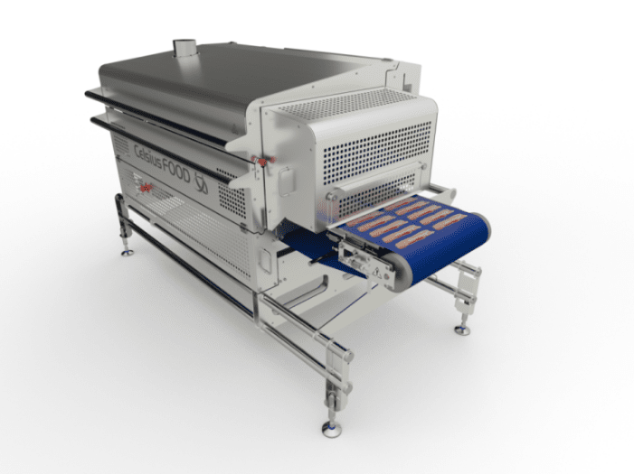 This device uses thermal fluid and continuous steam-cleaning in order to reduce power and energy consumption, becoming an efficient and hygienic machine. As a device that utilises twin belts, it becomes an extremely proficient method of cooking, ideal for a production area that requires an efficient, resourceful device. CelsiusFood also manufacture ConDuo models to adapt to your capacity needs.