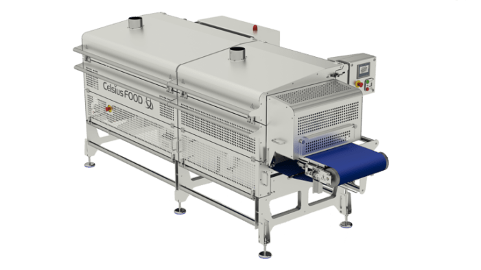 This device uses thermal fluid and continuous steam-cleaning in order to reduce power and energy consumption, becoming an efficient and hygienic machine. As a device that utilises twin belts, it becomes an extremely proficient method of cooking, ideal for a production area that requires an efficient, resourceful device. CelsiusFood also manufacture ConDuo models to adapt to your capacity needs.
