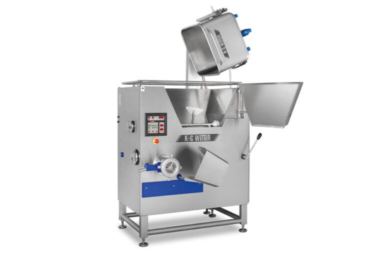 The K+G Wetter GmbH Angle Grinder is a high-performance machine that utilises speed and ergonomics to achieve an efficient, high-quality result each time. The option of the manual or pneumatic sorting device allows for gristle and bone separation, this device is easily installed and removed without the need for tools. This installation provides an immediately visible sorting result which is easily re-adjusted, if necessary, it is also easily cleaned and maintained due to its easily accessible components. The K+G Wetter GmbH Angle Grinder operates with a two-worm principle, or two-screw principle, these components work together to ensure perfectly synchrony, a gentle material feed and an accurate cutting result.