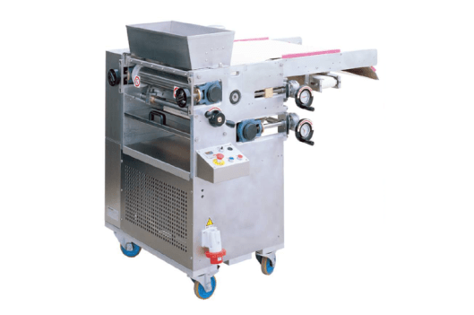 For efficient cleaning, the machine includes a stainless steel scraper designed to clean the conveyor belt. Beneath the scraper, a motorised belt is positioned to collect dough scraps.